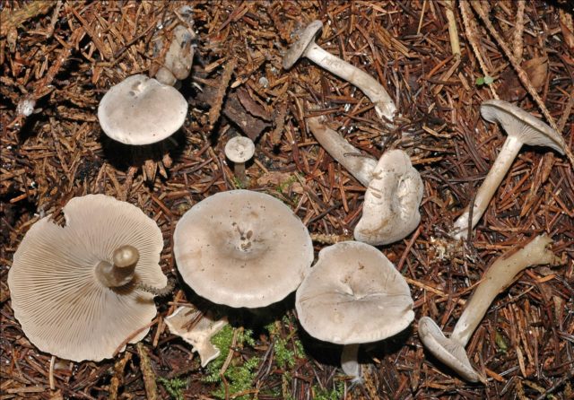 Το καπέλο είναι υπόλευκο γκρι. Η δομή είναι υδαρή. Αρχίζει να αυξάνεται από το τέλος του καλοκαιριού και συνεχίζεται μέχρι την έναρξη του παγετού. Βρίσκεται σε κωνοφόρα και μικτά δάση. Το δηλητηριώδες μανιτάρι διαφέρει από το αυλακωτό govorushka ελλείψει μυρωδιάς και σε γκρι χρώμα. Σε ξηρό καιρό, το δηλητηριώδες δίδυμο έχει μια δυσάρεστη μυρωδιά μούχλας.