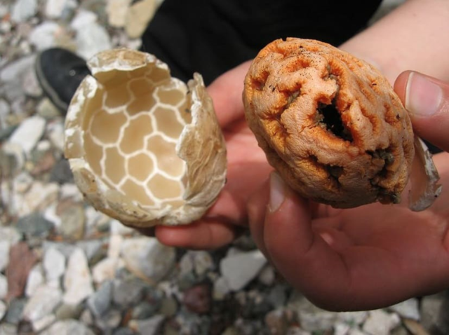 Στην πίσω πλευρά, τα συνδετικά υπέρθυρα καλύπτονται με μια πράσινη-ελιά ελιά που φέρει σπόρους, η οποία αποπνέει μια συμπυκνωμένη μυρωδιά σάπιας σάρκας. Αυτό βοηθά τον μύκητα να προσελκύσει την προσοχή των εντόμων, με τη βοήθεια του οποίου εξαπλώνεται στις γύρω περιοχές. Μια δυσάρεστη οσμή εκπέμπεται μόνο από εκείνα τα δείγματα στα οποία τα σπόρια είναι πλήρως ώριμα. Το ιδιαίτερο άρωμά τους απλώνεται σε απόσταση περίπου 15 μέτρων.