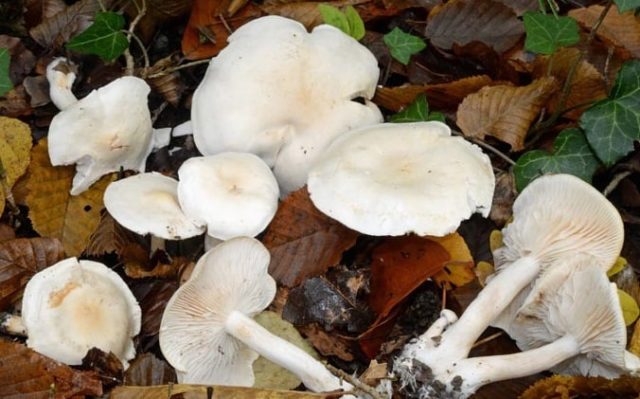 - Λευκό δηλητηριώδες ryadovka. Ο πολτός του, χρώματος λευκού ή γαλακτώδους, αποκτά μια ροζ απόχρωση στο διάλειμμα. Το πόδι και το καπάκι είναι λευκό. Ένα ξεχωριστό χαρακτηριστικό είναι μια έντονη μυρωδιά που θυμίζει ραπανάκι.