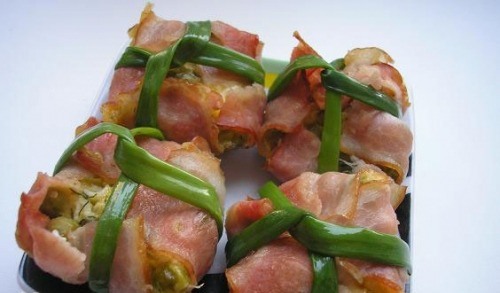 - Βάλτε το γέμισμα στη μέση κάθε τετραγώνου και τυλίξτε τις γωνίες προς το κέντρο με τη μορφή φακέλων. Για να διατηρήσετε το σχήμα τους, μπορείτε να τα ασφαλίσετε με οδοντογλυφίδες ή να τα επιδέσετε με πράσινα κρεμμύδια.