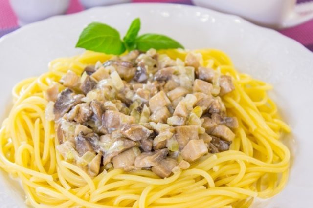Για ένα οικογενειακό γεύμα, μπορείτε να ετοιμάσετε μια νόστιμη γρήγορη συνταγή. Μπορεί επίσης να είναι μια καλή προσθήκη σε οποιοδήποτε πιάτο και θα γίνει σωσίβιο σε περίπτωση απροσδόκητης επίσκεψης επισκεπτών, θα σας βοηθήσει να απολαύσετε τους φίλους σας με νόστιμο και γρήγορο τρόπο χωρίς να χρειαστεί πολύς χρόνος για το μαγείρεμα. Τα συστατικά - μάζα μανιταριών, βαριά κρέμα και τυρί - λαμβάνονται στον επιθυμητό όγκο.