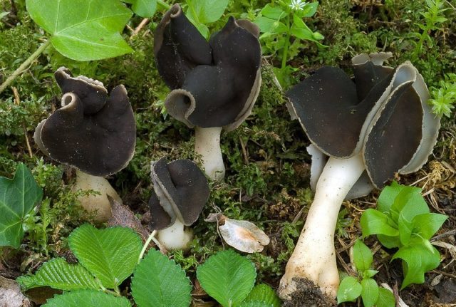 Λευκός λοβός... Βρώσιμο υπό όρους με σέλα ή καμπύλο καπάκι, που αποτελείται από τρεις ή περισσότερους λοβούς. Η επιφάνεια είναι γκριζοπράσινη ή μαύρη, λεία, μερικές φορές με ελαφρύτερα σημεία. Οι βίλες φαίνονται στην κάτω πλευρά. Ο μίσχος είναι κοίλος, λευκός, διευρυμένος στη βάση ή πεπλατυσμένος, ομαλός, χωρίς αυλακώσεις, βρώμικο κίτρινο ή καπνιστό καφέ στο παλιό δείγμα. Ο πολτός είναι εύθραυστος, λεπτός, η γεύση και η μυρωδιά δεν εκφράζονται. Αναπτύσσεται σε ομάδες, σε κωνοφόρα και φυλλοβόλα δάση, σε αμμώδη εδάφη. Καρποφορία από Μάιο έως Οκτώβριο. Ορισμένες πηγές έχουν πληροφορίες σχετικά με την ακατέργαστη τοξικότητα και την ανάγκη για παρατεταμένη θερμική επεξεργασία.