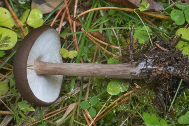 - Melanoleuca ριγέ - αναφέρεται σε υπό όρους βρώσιμα μανιτάρια. Το σώμα των φρούτων είναι γκρι-καφέ ή κοκκινωπό. Σε νεαρή ηλικία, η σάρκα είναι λευκή ή γκρι, σε ώριμη αγοράζει καφέ απόχρωση.