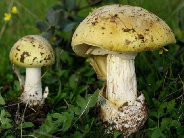- ένα χλωμό φρύνος έχει λευκό-κίτρινο καπάκι.