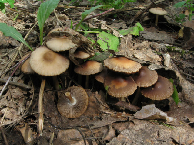 Αυτό το μανιτάρι σε σχήμα, καθώς και στο μέγεθος του καπακιού και του ποδιού, μοιάζει πολύ με την γκρίζα-καφέ εμφάνιση.Το χρώμα μπορεί να διαφέρει ανάλογα με τις καιρικές συνθήκες. Στην ξηρασία, το σώμα των φρούτων φωτίζει, και σε βροχερές καιρικές συνθήκες, το υδρόφοβο καπάκι απορροφά την υγρασία και σκουραίνει. Η κύρια διαφορά μεταξύ του είδους είναι ο ψευδής δακτύλιος, ο οποίος βρίσκεται στην κορυφή του ποδιού.