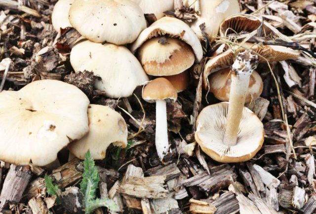 Ένας άλλος εκπρόσωπος του γένους Psaritell, που αγαπά να εγκατασταθεί στα ερείπια κωνοφόρων δέντρων. Τις περισσότερες φορές, αυτή η ποικιλία αναπτύσσεται σε πυκνές ομάδες, αλλά μπορεί επίσης να βρεθεί σε μεμονωμένα δείγματα. Το Psaritella wadded διαφέρει σε μια ελαφρύτερη σκιά του καπακιού. Αλλά σε μορφή, είναι παρόμοιο με τους περισσότερους εκπροσώπους του είδους του. Ο μύκητας θεωρείται μη βρώσιμος, αν και δεν υπάρχουν πληροφορίες σχετικά με το περιεχόμενο των τοξινών στο καρποφόρο σώμα.