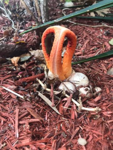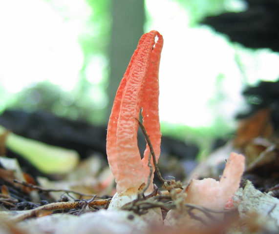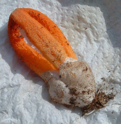Όταν το κέλυφος του αυγού σπάσει, το καρποφόρο σώμα εμφανίζεται με τη μορφή πολλών τόξων σύνδεσης. Συνήθως, υπάρχουν 2 έως 6 λεπίδες. Στο εσωτερικό, καλύπτονται με βλέννα που περιέχει σπόρια, εκπέμποντας μια συγκεκριμένη μυρωδιά που προσελκύει μύγες. Αυτά τα έντομα είναι οι κύριοι διανομείς σπόρων αυτού του τύπου μύκητα, καθώς και ολόκληρο το γένος Veselkov. Το σώμα των φρούτων είναι κίτρινο ή ροζ έως πορτοκαλί-κοκκινωπό χρώμα. Η ίδια η σάρκα είναι τρυφερή και σπογγώδης. Κατά κανόνα, το καρποφόρο σώμα παίρνει μια φωτεινότερη σκιά από ψηλά και ένα ανοιχτόχρωμο από κάτω. Το ύψος των λεπίδων μπορεί να φτάσει τα 15 cm και το πάχος είναι περίπου 2 cm.