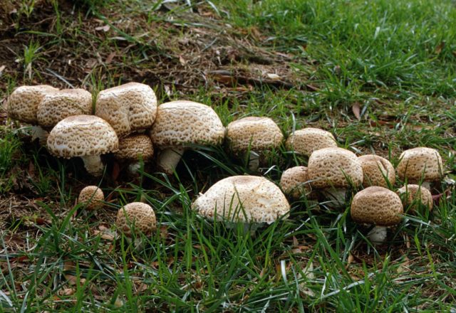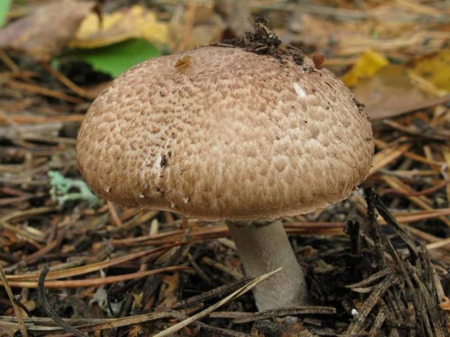 Στα νεαρά μανιτάρια, το καπάκι έχει σχήμα κώνου με αμβλύ κορυφή, μόνο σε αρκετά παλιά δείγματα γίνεται πιο κολακευτικό. Η διάμετρος του άνω μέρους κυμαίνεται από 10 έως 15 εκ. Το ίδιο το καπάκι είναι πολύ πυκνό και σαρκώδες με φολιδωτή επιφάνεια. Το στέλεχος είναι κυλινδρικό, ελαφρώς παχύρευστο στη βάση. Είναι βαμμένο σε υπόλευκη απόχρωση, αλλά αφού το πιέσετε κοκκινίζει αισθητά. Το ύψος των ποδιών μπορεί να είναι έως 10 cm.