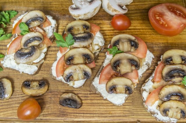 Κρύα σάντουιτς με ντομάτες και μανιτάρια