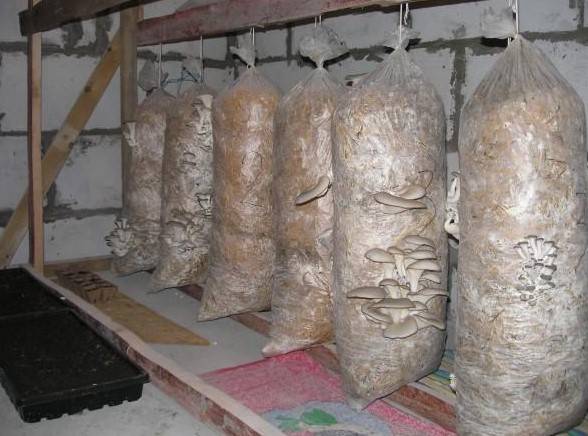 Όπως αναφέρθηκε παραπάνω, για αρκετές εβδομάδες τοποθετούνται σακούλες με άχυρο με μυκήλιο σε δροσερό δωμάτιο. Μόλις γίνουν λευκές και λευκές χορδές, τις βγάζουμε σε ένα ζεστό δωμάτιο με θερμοκρασία 18-20 μοίρες.