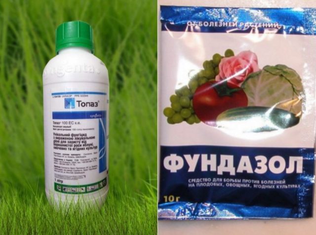 - Τοπάζι. Ένα αποτελεσματικό μυκητοκτόνο με βάση την πενσοναζόλη. Ο μηχανισμός δράσης αυτού του φαρμάκου είναι να καταστέλλει τα σπόρια του μύκητα, υπό την επίδραση της πενσοναζόλης, σταματούν εντελώς να αναπτύσσονται. Το φάρμακο διεισδύει τέλεια στους φυτικούς ιστούς, η αποτελεσματικότητά του δεν εξαρτάται από τη θερμοκρασία και την υγρασία του αέρα.