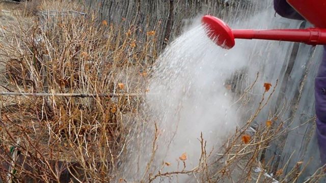 - Επεξεργασία με ανοιξιάτικα φραγκοστάφυλα από ωίδιο με βραστό νερό. Στις αρχές της άνοιξης, πριν από την έναρξη της καλλιεργητικής περιόδου, οι θάμνοι πρέπει να ζεματίζονται με πολύ ζεστό νερό, στο οποίο αραιώνεται μια μικρή ποσότητα υπερμαγγανικού καλίου ή μερικές κουταλιές σόδας. Το μέτρο είναι αποτελεσματικό τόσο κατά των παθογόνων μυκητιακών νόσων όσο και κατά των παρασίτων, οι προνύμφες των οποίων ξεχειλίζουν στις πτυχές και τις ρωγμές του φλοιού.