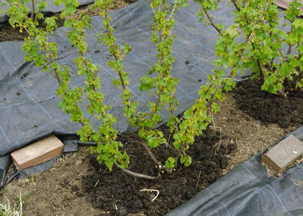 Μετά τη φύτευση, τα σπορόφυτα σταφίδων ποτίζονται άφθονα και έχουν στρώσει. Το ριζικό σύστημα των σταφίδων βρίσκεται κοντά στην επιφάνεια του εδάφους, οπότε πρέπει να του παρέχετε επαρκή υγρασία.Το στρώμα βοηθά στη διατήρησή του, μειώνοντας έτσι τη συχνότητα ποτίσματος.