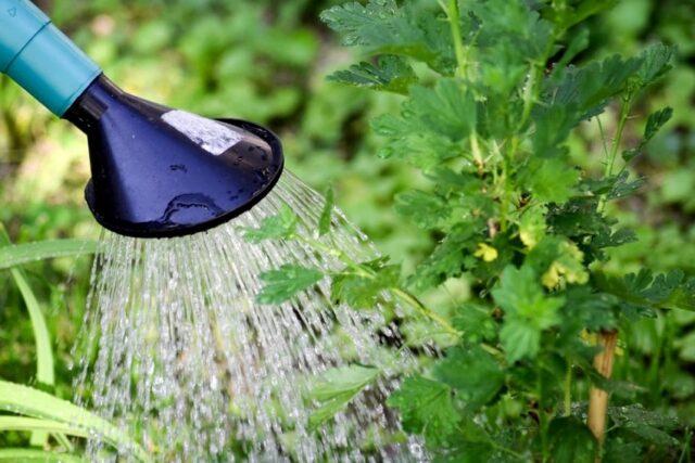 - Τα νεαρά φυτά ποτίζονται 2 φορές την εβδομάδα, ενήλικοι θάμνοι - 2-3 φορές το μήνα (2 κουβάδες με νερό). Στη ζέστη, υγραίνονται κάθε εβδομάδα, το στέμμα ποτίζεται περιοδικά το βράδυ.