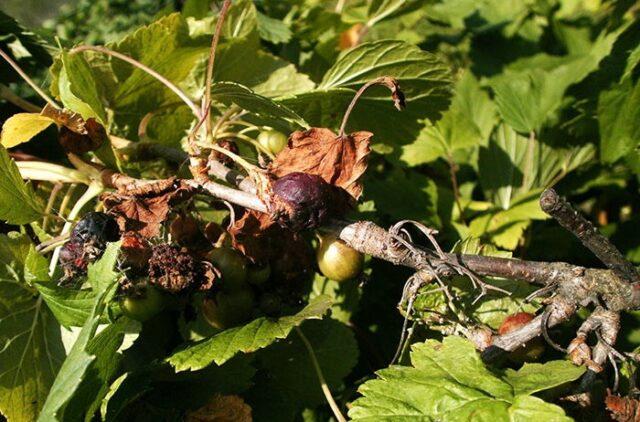 Αυτή τη στιγμή, μια πεταλούδα σκώρου ή πριονόλαπο μπορεί να ενεργοποιηθεί στον κήπο. Στα πρώτα σημάδια βλάβης (στριμμένα ξηρά φύλλα, παραμόρφωση των μούρων), πραγματοποιείται ψεκασμός με κατάλληλα παρασκευάσματα.