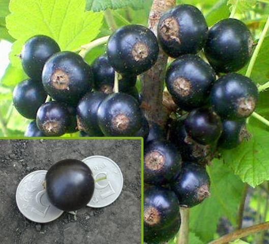 - Το τεράστιο μέγεθος των μούρων είναι ένα από τα μεγαλύτερα μεταξύ όλων των ποικιλιών της μαύρης σταφίδας.