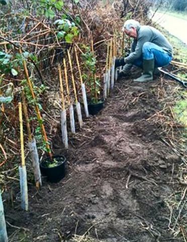- Ένα δενδρύλλιο hawthorn τοποθετείται στη μέση της εσοχής και πασπαλίζεται με γη.