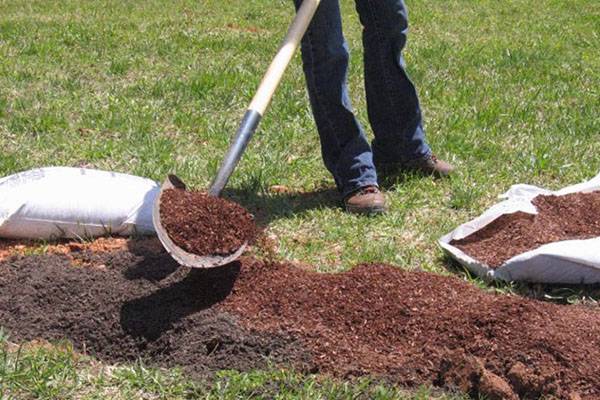 - Το λάκκο καλύπτεται με ένα θρεπτικό μείγμα έτσι ώστε να εμβαθύνει το κολάρο της ρίζας κατά 1,5-2 cm.