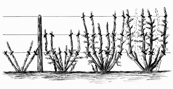 Η πέργκολα εγκαθίσταται από βορρά προς νότο για καλή κάλυψη των θάμνων. Το σύρμα τραβιέται πάνω του σε τρία επίπεδα (50, 80, 100 cm πάνω από το έδαφος). Με αυτήν την αναπτυσσόμενη μέθοδο, τα φραγκοστάφυλα σχηματίζονται ως εξής: