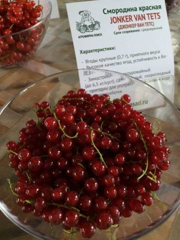 Παρά το γεγονός ότι σήμερα υπάρχει ένας τεράστιος αριθμός νέων ποικιλιών κόκκινων σταφίδων, σύμφωνα με τους κηπουρούς, κανείς δεν θέλει να αρνηθεί τον Jonker Van Tets. Δεν αφορά μόνο τη γεύση, αλλά και τα μεγάλα οφέλη των κόκκινων μούρων. Περιέχουν πολλά μέταλλα, βιταμίνες των ομάδων Α, C, P, τανίνες και πηκτίνες.