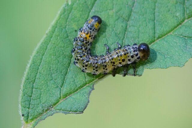 Η προνύμφη του πριονιού καταστρέφει τις πλάκες φύλλων και τους νεαρούς βλαστούς, το δενδρύλλιο πεθαίνει λόγω έλλειψης θρεπτικών ουσιών