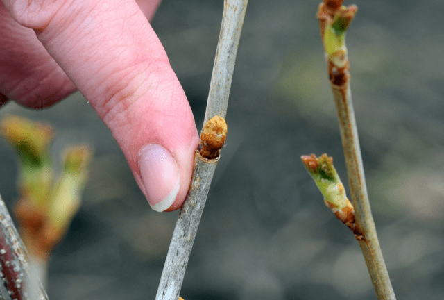 Ανάλογα με τις καιρικές συνθήκες, τα μπουμπούκια της κόκκινης σταφίδας Rondome εμφανίζονται στα μέσα Μαΐου