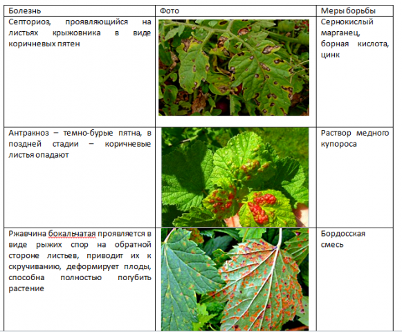 Δυστυχώς, σπάνια φυτά ανθίζουν και αποδίδουν καρπούς με ασφάλεια χωρίς να προσελκύουν την προσοχή των παρασίτων. Παρά την υψηλή αντοχή του σε πολλές ασθένειες, το φραγκοστάφυλο Μαλαχίτης δεν είναι απαλλαγμένο από την καταστροφή της καλλιέργειας από έντομα. Εν συντομία, τα μέτρα ελέγχου για τα κύρια παράσιτα παρατίθενται στον πίνακα: