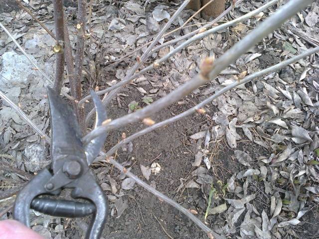- Πριν το κλάδεμα, πρέπει να αξιολογήσετε την κατάσταση των βλαστών. Εάν έχουν στριμμένα φύλλα, τότε αυτό υποδηλώνει ασθένεια ανθρακνόζης. Εάν βρεθούν τέτοια σημάδια, κόβουμε τους βλαστούς. Παρουσία παχιών μπουμπουκιών, η πιθανότητα κροτώνου είναι υψηλή. Τα κομμένα κλαδιά καίγονται για να αποφευχθεί η εξάπλωση παρασίτων και ασθενειών.