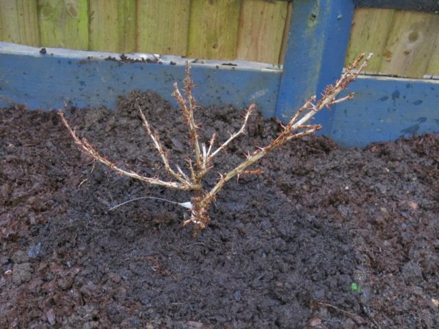 - Τοποθετήστε το θάμνο σε όρθια θέση ή ελαφρώς υπό γωνία σε μια τρύπα, βάθους όχι περισσότερο από 7 - 10 εκ. Κρατώντας το φυτό, γεμίστε τον ελεύθερο χώρο στις πλευρές με τα υπολείμματα του εύφορου μείγματος.