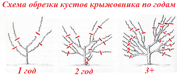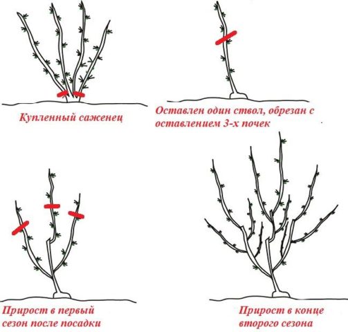 3ο και 4ο έτος | Ο θάμνος δεν πρέπει να έχει περισσότερα από τέσσερα κύρια κλαδιά. Χαμηλή ανάπτυξη κοντά στο έδαφος (μηδέν) οι βλαστοί κόβονται στη βάση. Στα υπόλοιπα βλαστάρια, αφαιρείται το 1/3 του μήκους. |