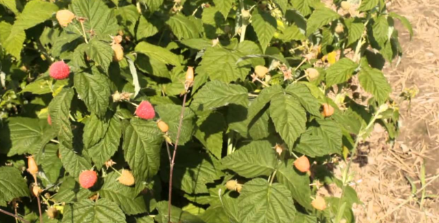 Αυτό το είδος απομειωμένου βατόμουρου διακρίνεται από ένα εξαιρετικό, ευχάριστο άρωμα και μια λεπτή γεύση μούρων με γλυκόξινη γεύση. Μεσαίου μεγέθους φρούτα ζυγίζουν από 5 έως 7 γραμμάρια Το χρώμα τους είναι κίτρινο, το σχήμα είναι κωνικό, ελαφρώς επιμήκη. Τα σμέουρα drupes είναι αρκετά πυκνά. Η απόδοση της καλλιέργειας είναι υψηλή - 2,5 kg / bush. Μπορείτε να δείτε τη φωτογραφία του σμέουρου "Golden Autumn" στην παρακάτω φωτογραφία.