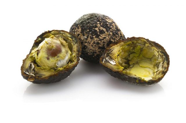 - Εάν η σάρκα ενός αβοκάντο Hass είναι ομοιόμορφα καφέ στο εσωτερικό, με σκούρες ραβδώσεις και τελείες, τότε αυτό το φρούτο είναι χαλασμένο.