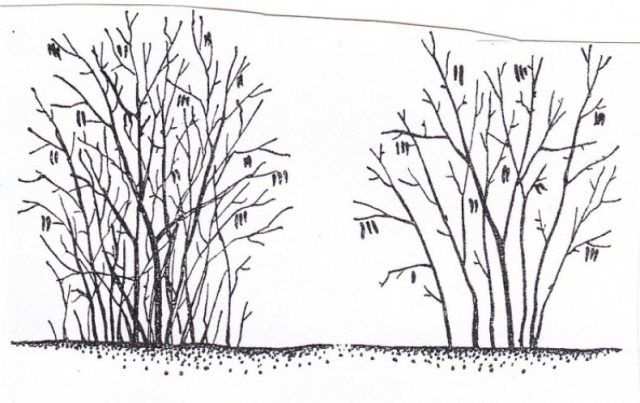 Επομένως, όταν τα φουντούκια εισέρχονται στην περίοδο καρποφορίας, είναι απαραίτητο να αραιωθεί το εσωτερικό μέρος του θάμνου. Τα νεαρά κλαδιά δεν μπορούν να μειωθούν, καθώς το καρύδι αποδίδει καρπούς σε ετήσιους βλαστούς. Με το κλάδεμα, πρέπει να τονώσετε την ετήσια ισχυρή ανάπτυξη.