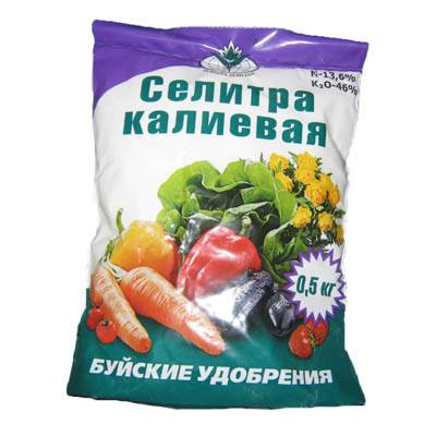 - Νιτρικό κάλιο ή νιτρικό κάλιο - ένα δημοφιλές λίπασμα ποτάσας που περιέχει άζωτο και κάλιο - τα πιο βασικά στοιχεία για τα αγγούρια. Ταυτόχρονα, υπάρχει λιγότερο άζωτο. Επομένως, η χρήση νιτρικού καλίου ενδείκνυται στο στάδιο του σχηματισμού της καλλιέργειας, όταν τα αγγούρια δεν χρειάζεται να αναπτύξουν πράσινη φυλλοβόλη μάζα. Χωρίς χλώριο. Για να ταΐσετε τα φυτά με ένα διάλυμα, πάρτε νιτρικό κάλιο (20 g) και διαλύστε σε 10 λίτρα νερού.