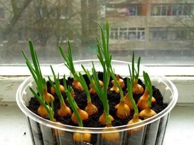 Για μια πιο συμπαγή τοποθέτηση κρεμμυδιών που καλλιεργούνται σε περβάζι, συνιστάται η χρήση ειδικών δοχείων με κελιά.