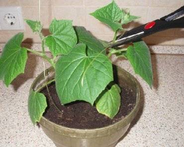Στις συμπαγείς συνθήκες του διαμερίσματος, είναι πολύ σημαντικό να ξεκινήσετε το σχηματισμό του αγγουριού εγκαίρως και σωστά, έτσι ώστε το φυτό να λαμβάνει το μέγιστο φως και να μην καταλαμβάνει πολύ χώρο. Γι 'αυτό, τα φυτά τρυπάται στο επίπεδο των 4-5 φύλλων, γεγονός που συμβάλλει στην ανάπτυξη των πλευρικών βλεφαρίδων. Μετά από λίγο καιρό, μπορούν να τσιμπήσουν στο επίπεδο των 6-8 φύλλων, μετά από τα οποία σχηματίζονται νέοι πολυάριθμοι βλαστοί στους άξονες του αγγουριού.