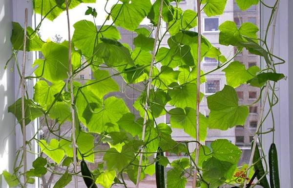 Ο σχηματισμός ενός αγγουριού συνεπάγεται την υποχρεωτική καλτσοδέτα. Για να το κάνετε αυτό, μπορείτε να τεντώσετε νήματα κατά μήκος του παραθύρου ή να εγκαταστήσετε πονταρίσματα και ειδικά δίχτυα σε γλάστρες. Είναι απαραίτητο να τακτοποιήσετε τα φύλλα αγγουριού σε έναν ανεμιστήρα, έτσι ώστε το φυτό να μπορεί να λάβει τη μέγιστη ποσότητα φωτός στο περβάζι.