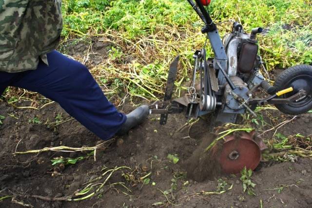 - Όταν εργάζεστε με έναν καλλιεργητή, είναι καλύτερο να σκάβετε κονδύλους κάθε 1 σειρά. Διαφορετικά, ένας τροχός του οχήματος θα κινηθεί κατά μήκος του ποδοπατημένου μονοπατιού και ο άλλος - κατά μήκος του οργωμένου εδάφους.