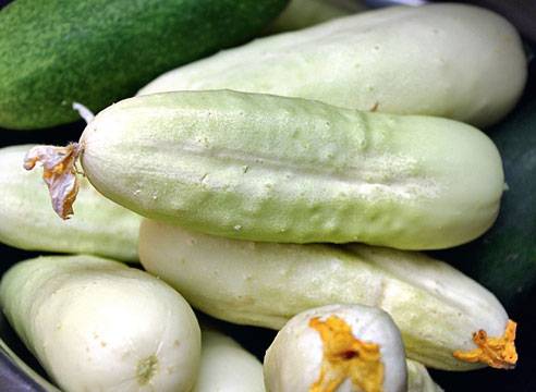 Αυτά είναι μικρά αγγούρια μήκους περίπου 7 cm με ασυνήθιστο λευκό χρώμα · στην επιφάνεια του καρπού υπάρχει ένας μικρός αριθμός μικρών φυματίων. Αυτή η ποικιλία είναι καλή για αλάτι και φρέσκια κατανάλωση.