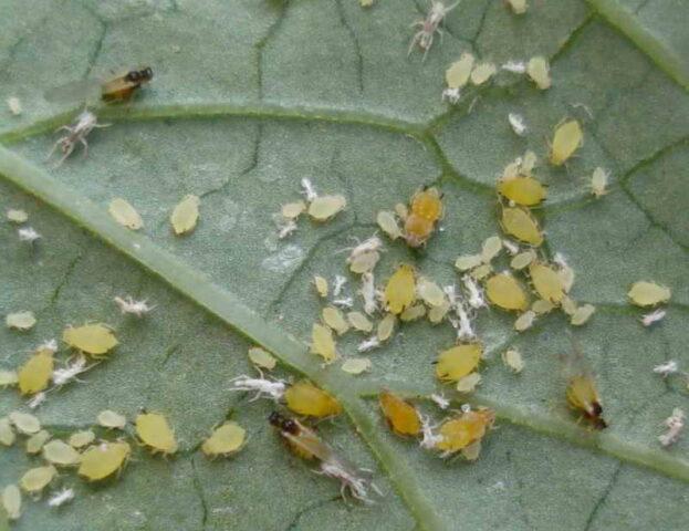 Τα παράσιτα πιπιλίζουν το χυμό από τα φύλλα, οι θάμνοι επιβραδύνουν την ανάπτυξή τους και σταματούν να αποδίδουν καρπούς. Τα έντομα φέρουν μολυσματικές ασθένειες. Για την προστασία του πολιτισμού από την εισβολή παρασίτων, συνιστάται η απολύμανση του εδάφους και των υποστηρικτικών του θερμοκηπίου την άνοιξη και το φθινόπωρο.