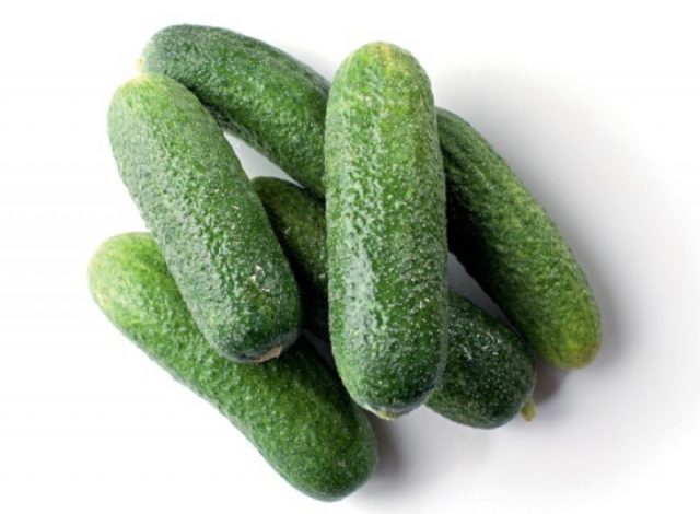 Εξωτερικά χαρακτηριστικά των αγγουριών Lukhovitsky, που εμφανίζονται στη φωτογραφία: