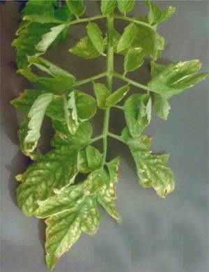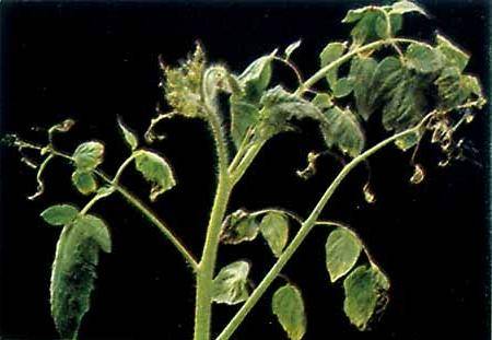 Πρέπει να σημειωθεί ότι η περίσσεια καλίου επηρεάζει επίσης αρνητικά τα φυτά τομάτας. Ένα σημάδι περίσσειας περιεχομένου αυτού του ιχνοστοιχείου είναι χλωμό, μωσαϊκό κηλίδες στα φύλλα της τομάτας. Τα φύλλα που επηρεάζονται με αυτόν τον τρόπο θα πέσουν σύντομα.