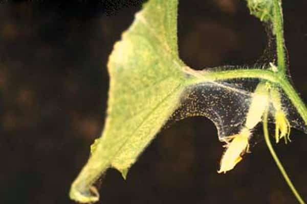 Το ακάρεο της αράχνης είναι ενεργό σε ξηρό, ζεστό καιρό, κατά τον σχηματισμό ωοθηκών στα αγγούρια. Μπορείτε να αναγνωρίσετε το παράσιτο με ένα ελαφρύ ιστός αράχνης που εμπλέκει μοσχεύματα, φύλλα, λουλούδια. Το φυτό γίνεται κίτρινο, επιβραδύνει την ανάπτυξη.