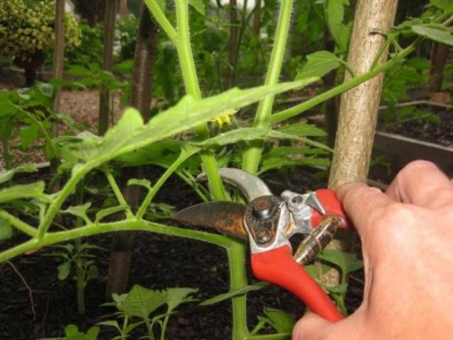 Καθ 'όλη τη διάρκεια της καλλιεργητικής περιόδου, οι ντομάτες της ποικιλίας Scarlet Frigate F1 σχηματίζουν μαζικά παιδιά. Τα χαμηλότερα μεγάλα φύλλα ντομάτας υπόκεινται επίσης σε αφαίρεση. Τα αραιωμένα χόρτα επιτρέπουν τη σωστή κατανομή των θρεπτικών ουσιών στο σώμα του φυτού, μεγιστοποιώντας έτσι τη διατροφή πολλών ντοματών. Εάν δεν πραγματοποιηθεί ο σχηματισμός θάμνων, οι ντομάτες σχηματίζονται μικρές. Λεπτομερείς πληροφορίες σχετικά με το σχηματισμό απροσδιόριστων ντοματών μπορείτε να βρείτε στο βίντεο: