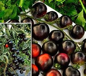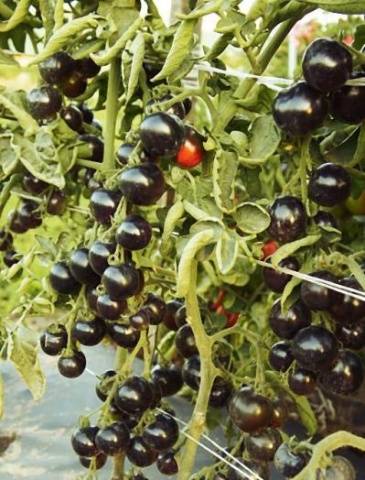 Ντομάτες Μαύρο μάτσο - προϊόν της ολλανδικής επιλογής. Το υβρίδιο παράγεται διασχίζοντας εγχώριες ποικιλίες με άγριους συγγενείς που αναπτύσσονται στη Χιλή και στα Νησιά Γκαλαπάγκος.