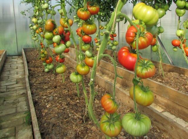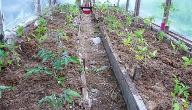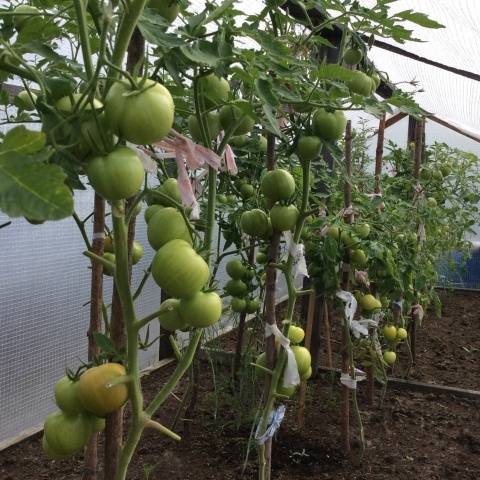 - η ντομάτα καταλαμβάνει πολύ χώρο στο θερμοκήπιο · στα κρεβάτια, ισχυροί και ψηλοί θάμνοι πρέπει επίσης να φυτευτούν σε ένα αξιοπρεπές διάστημα.