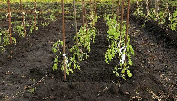- Οι ψηλές ντομάτες πρέπει να είναι προσδέσου... Για να το κάνετε αυτό, χρησιμοποιήστε πέργκολα ή μανταλάκια. Οι θάμνοι που μεγαλώνουν στα κρεβάτια δένονται ιδιαίτερα προσεκτικά, επειδή ο άνεμος μπορεί να τα σπάσει.