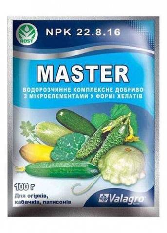 - Master - εάν το παραπάνω λίπασμα ήταν το πνευματικό τέκνο των Κάτω Χωρών, τότε το κύριο λίπασμα είναι προϊόν της ιταλικής εταιρείας Valagro. Διαφορετικά, όσον αφορά την ποικιλία των συνθέσεων και των αποτελεσμάτων στα φυτά, είναι πολύ παρόμοια. Διαλύεται επίσης πολύ καλά στο νερό, οπότε μπορεί να χρησιμοποιηθεί τόσο για πότισμα ρίζας όσο και για επίδεσμο φύλλων.Επιπλέον, η παρουσία μαγνησίου καθιστά επίσης δυνατή τη χρήση του πλοιάρχου για ντύσιμο κατά την ανθοφορία και την καρποφορία των αγγουριών, όταν αυτό το στοιχείο είναι ζωτικής σημασίας.