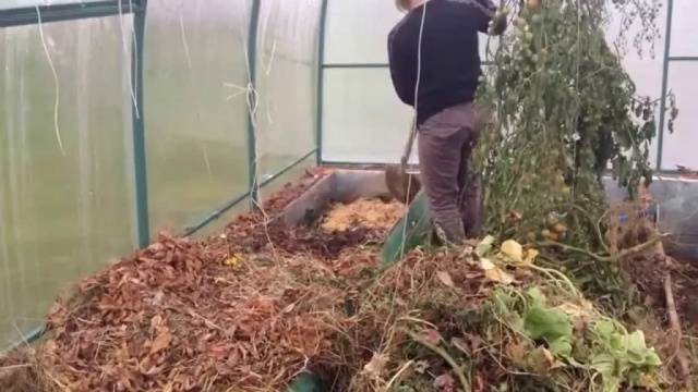 Μπορείτε να απολυμάνετε πολύ καλά το εσωτερικό του θερμοκηπίου χρησιμοποιώντας μια θειική βόμβα καπνού. Στη συνέχεια, προετοιμάστε το έδαφος για την επόμενη σεζόν. Σκάψτε με κοπριά, τύρφη ή χούμο.