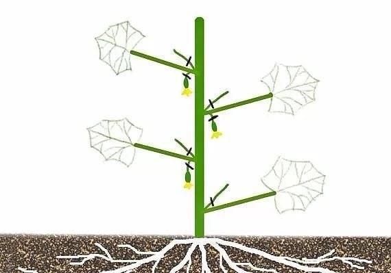 Στη συνέχεια, μετρήστε 3-4 internodes. Σε αυτά, οι πλευρικοί βλαστοί πρέπει να τσιμπήσουν, αφήνοντας μερικά φύλλα και μερικά αγγούρια το καθένα.